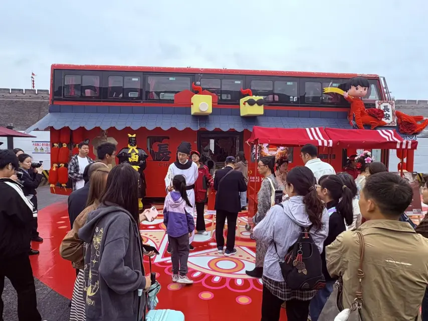 在觀光車上,身著唐裝的NPC與游客互動對詩、飛花令,再現(xiàn)大唐文風(fēng)鼎盛的場景?!翱炜?,‘李白’來啦!”一位游客驚喜地喊道。“李白”造型的工作人員,手持古扇,與游客即興對詩、接龍賦詩,優(yōu)勝者不僅成為現(xiàn)場“詩詞達人”,還能收獲額外驚喜獎勵。“沒想到對詩這么好玩兒!”一位游客在成功對詩后興奮地說,“這次西安旅游,讓我收獲了一段有溫度、有故事的城市記憶。”