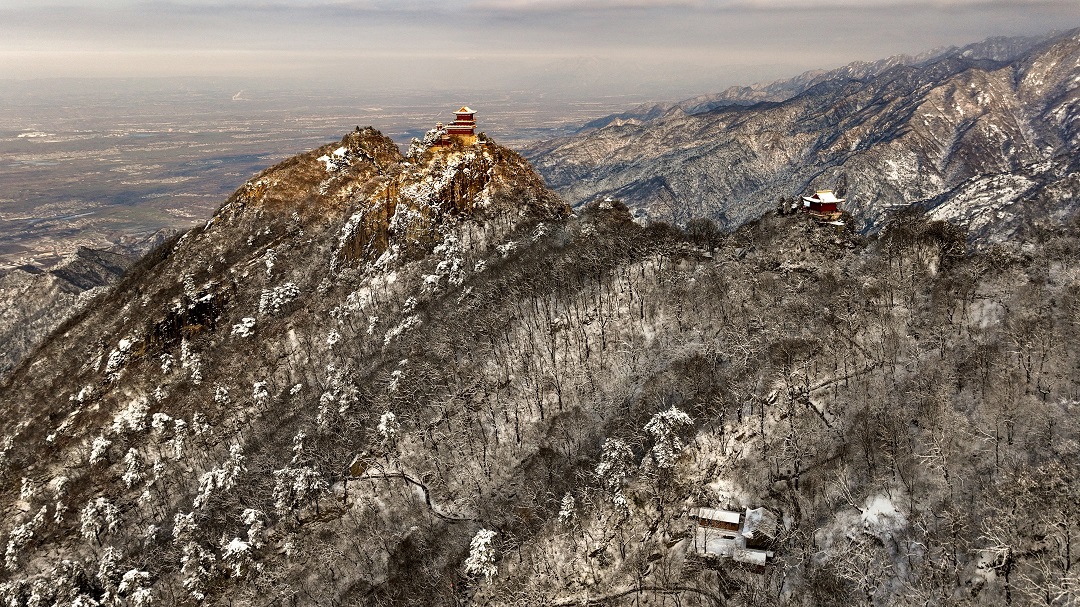 1月23日,秦嶺南五臺山上白雪皚皚、銀裝素裹,充滿詩情畫意,如同一幅水墨畫卷。
