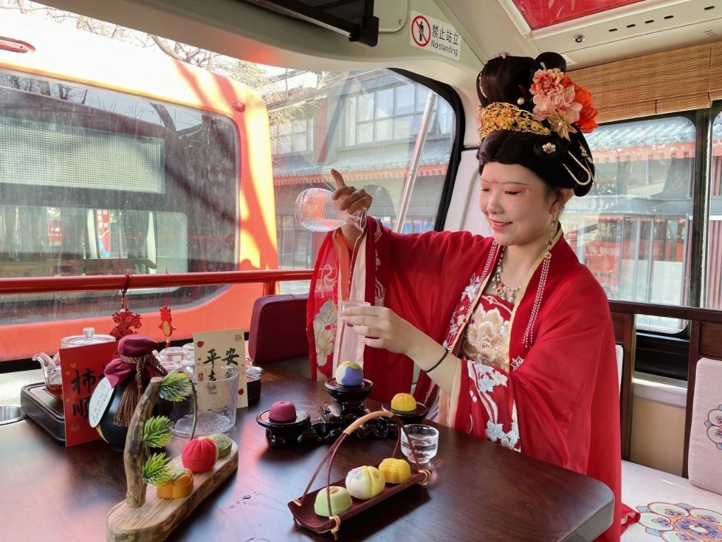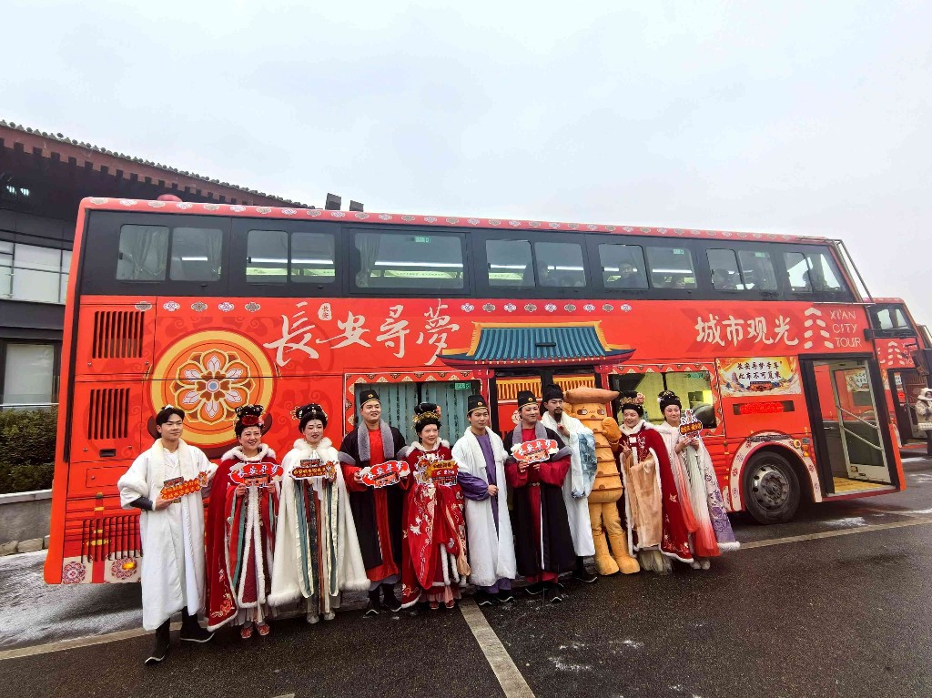 中國(guó)年最西安,潮西安新玩法,“乘巴士、觀秦風(fēng)、習(xí)漢學(xué)、品唐韻”慢享西安古城魅力,快來(lái)乘坐“西安城市觀光車”感受一場(chǎng)穿越之旅吧。