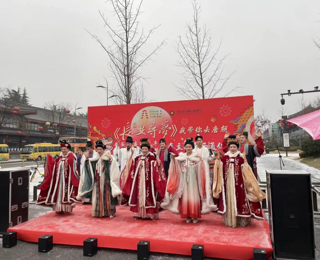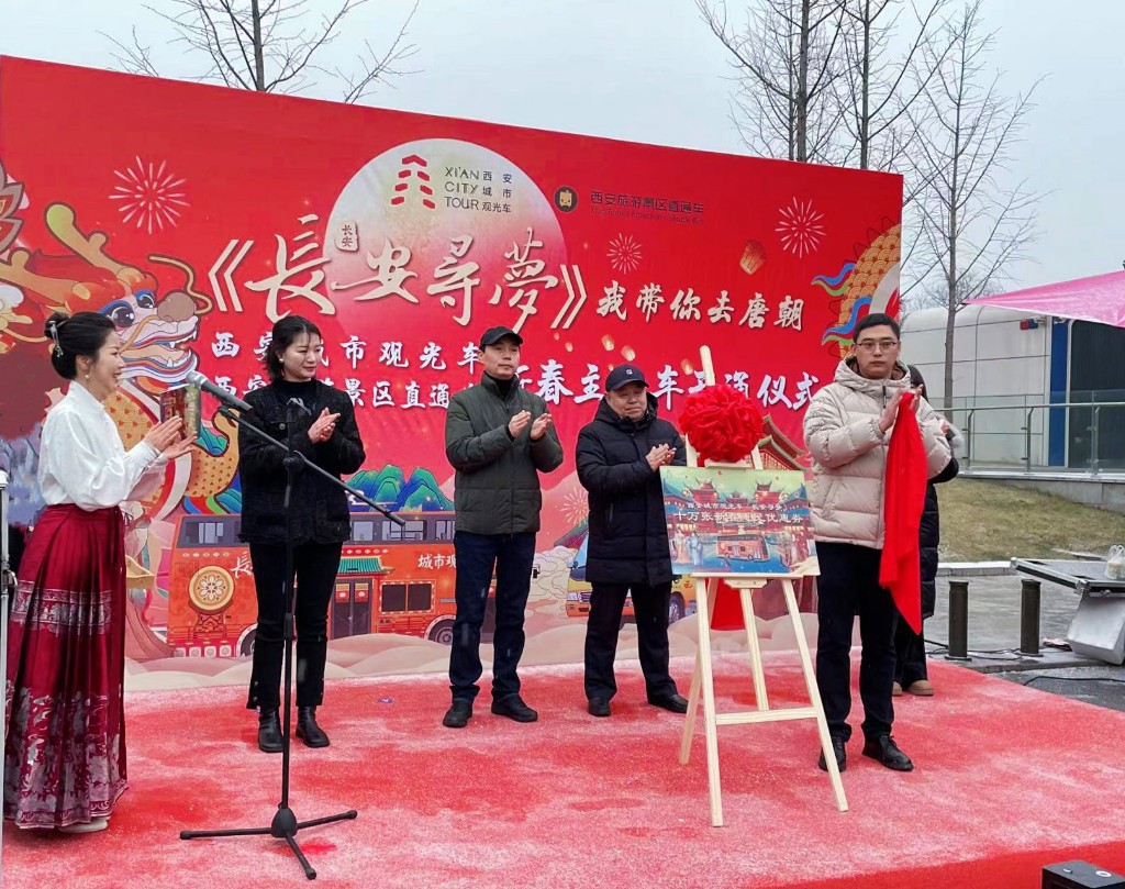 2月2日是中國(guó)傳統(tǒng)的小年,由西安城市觀光車主辦的長(zhǎng)安尋夢(mèng) 我?guī)闳ヌ瞥咝麓褐黝}車開(kāi)通儀式,在西安市民游客服務(wù)中心大雁塔景區(qū)拉開(kāi)帷幕。