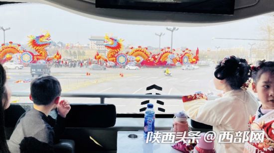 燈火暖長安,龍啟中國年。新春佳節(jié),西安特推出龍年主題城市觀光車,車內(nèi)張燈結(jié)彩,春節(jié)的氛圍感十足,市民乘坐觀光車即可一站式賞大唐風(fēng)華,看西安街頭花燈璀璨。