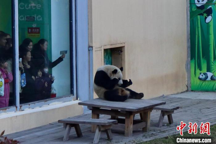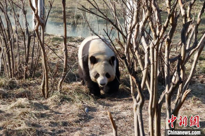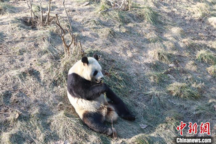 2月3日,記者探訪西安秦嶺野生動(dòng)物園,秦嶺大熊貓正在悠閑地散步、進(jìn)食,憨態(tài)可掬的模樣吸引了不少游客駐足。圖為秦嶺大熊貓。