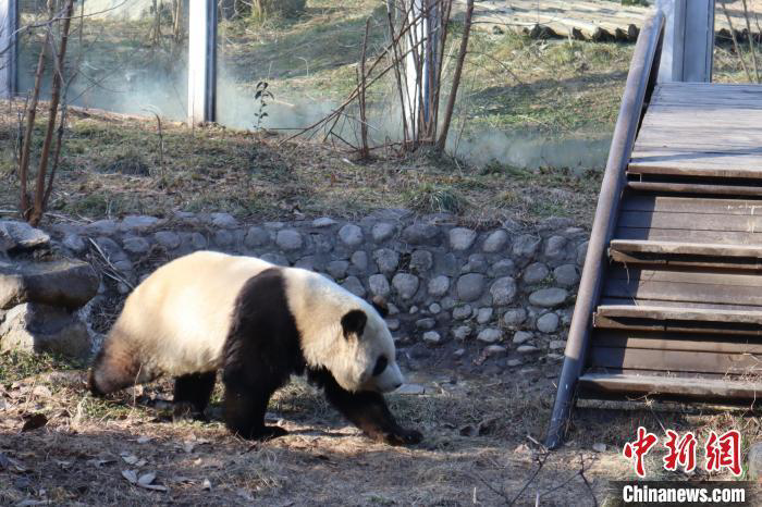 2月3日,記者探訪西安秦嶺野生動(dòng)物園,秦嶺大熊貓正在悠閑地散步、進(jìn)食,憨態(tài)可掬的模樣吸引了不少游客駐足。圖為秦嶺大熊貓正在散步。
