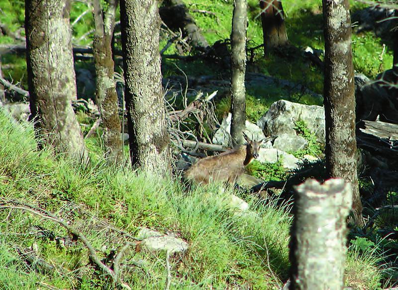 斑羚屬于國(guó)家Ⅱ級(jí)保護(hù)動(dòng)物,是秦嶺中偶蹄目草食性動(dòng)物,形似山羊,但頦下無(wú)須,通體青灰色。斑羚是典型的林棲型獸類,棲息生境多樣,常見(jiàn)于山地針葉林、針闊混交林和常綠闊葉林中,是大熊貓同域分布的伴生動(dòng)物之一。