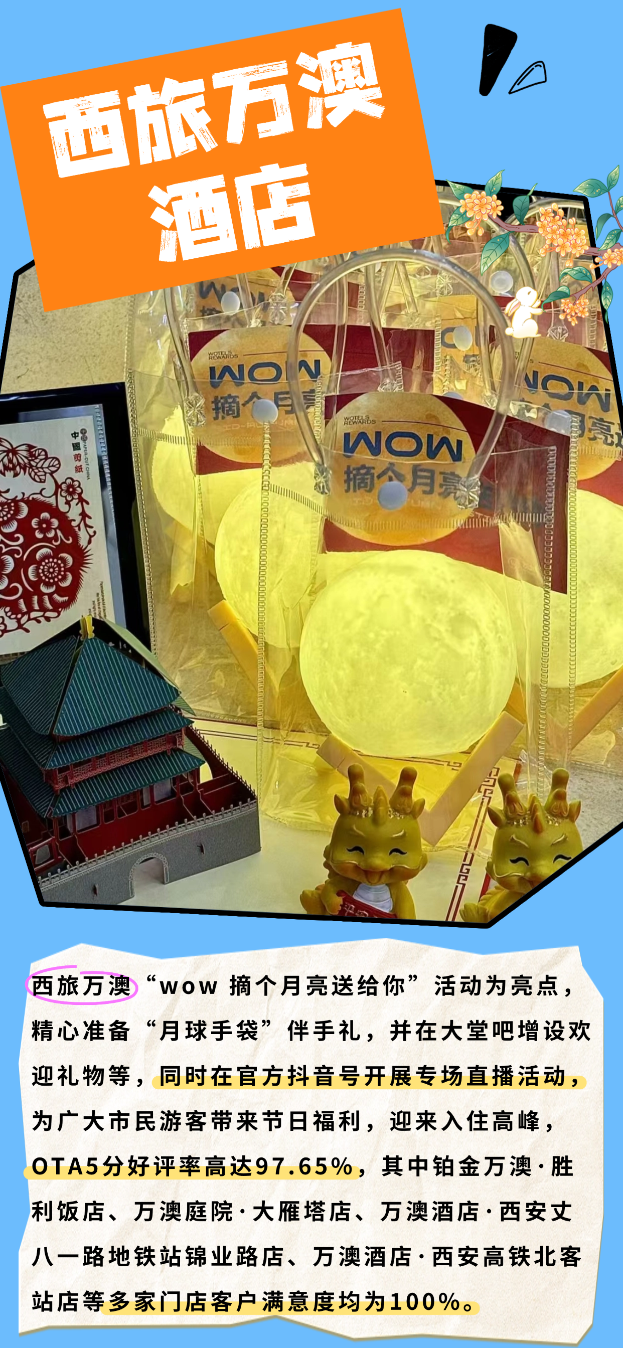 明月華彩映西旅,四海賓朋聚長安。今日中秋,月滿人間,清輝灑落古城,詩意與情思交織,西安再度成為令人向往的熱門旅游地,耀古城風情、嘗佳節(jié)美味、游錦繡山水、感國風魅力。西旅集團旗下景區(qū)、餐飲、酒店、旅行社、汽車等板塊緊扣中秋主題,精心謀劃,吸引眾多游客紛至沓來,共同度過了一個溫馨浪漫、充滿詩意的中秋假期。